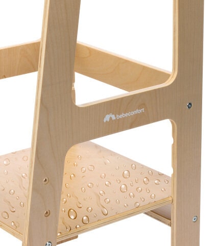 Hoya is varnished and painted to protect the wood. You can safely use a wet cloth to clean it. However, since wood is a natural material, we recommend not using detergent as it may damage the learning tower.