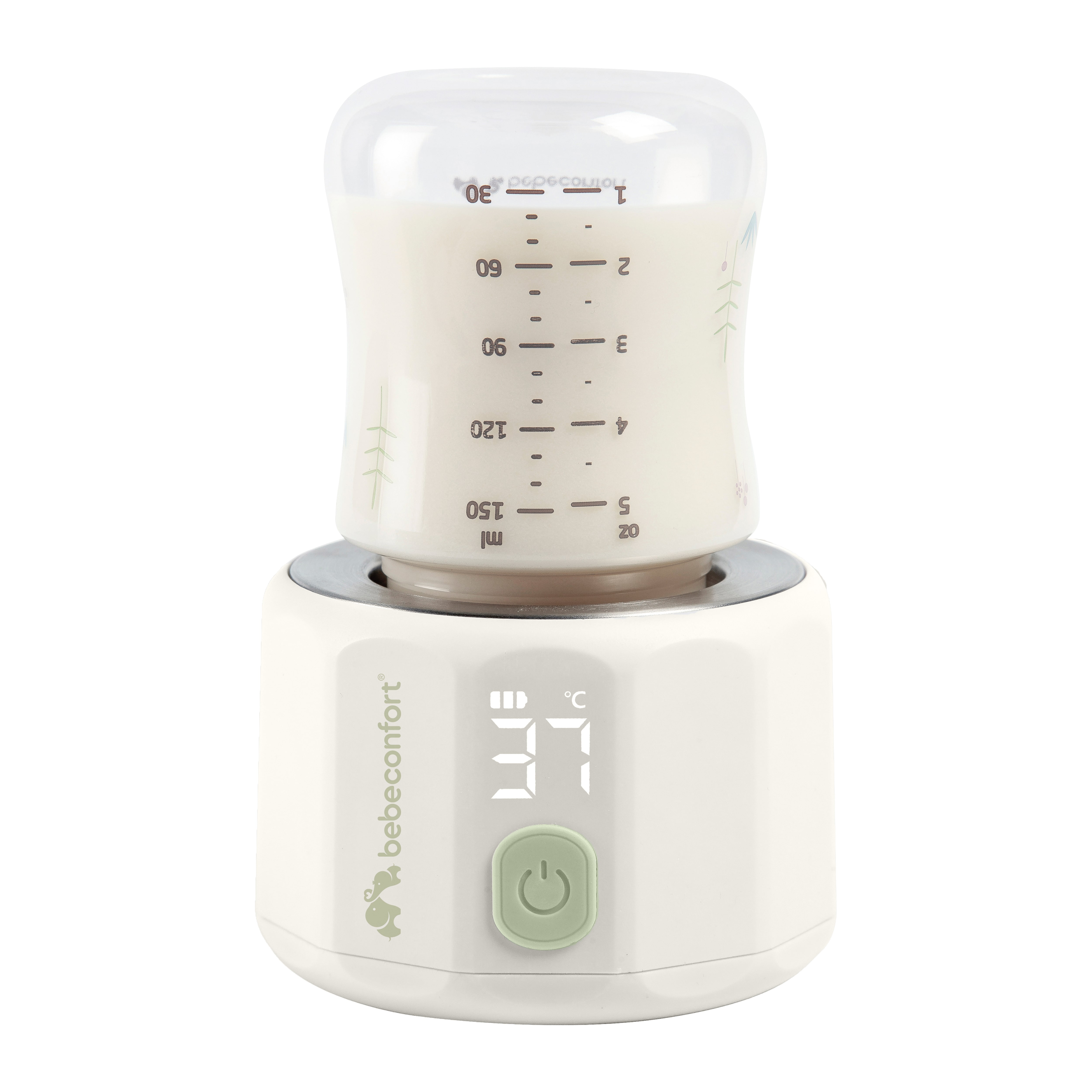 Check the bottle’s temperature and the bottle warmer’s remaining battery life on the clear digital display.