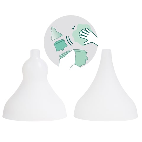 Includes two washable silicone tips in different sizes that can be easily dismantled for rinsing under the tap, plus an easy to wash mucus collection cup.