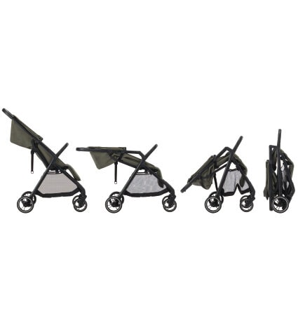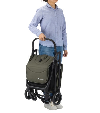Automatically fold your pushchair into a compact, space-saving package that stands up on its own.